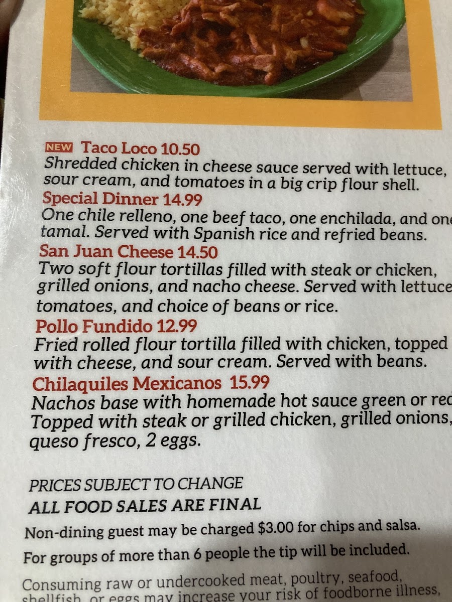 El San Juan Mexican Restaurant. Menu (Update 2025)
